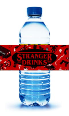 Stranger Things Bottle Labels: Reads 'Stranger Drinks'